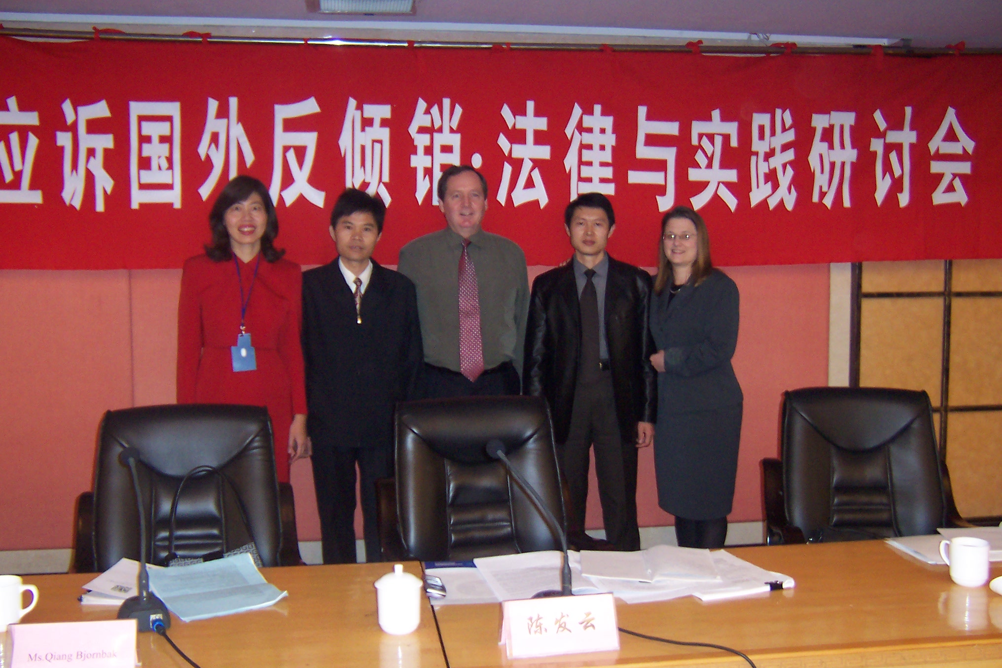刘海浪律师参加由江苏省举办的企业应对国外反倾销实务研讨会,就企业如何应对国外反倾销同与会外国专家进行了深入的探讨。(右二)